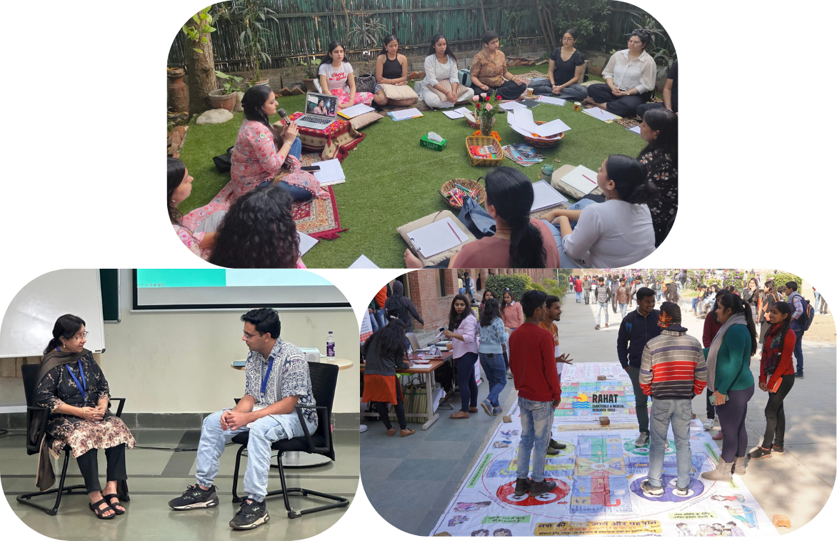 RAHAT designs and implements education, capacity-building, intervention, and research programmes for diverse populations, including children, youth, families, caregivers, and community stakeholders. Through awareness initiatives, training, psychosocial support, and evidence-informed research, RAHAT addresses mental health, within a public health context. It focuses on mental health literacy, reducing stigma, strengthening coping skills, building resilience and promoting holistic well-being at individual, community, and institutional levels. Know More…